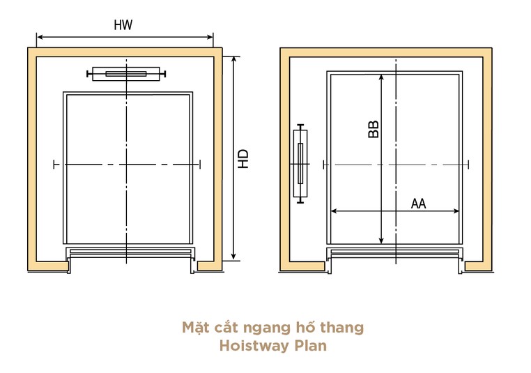 Kích thước phòng thang (cabin): 800mm * 800mm * 1000mm.