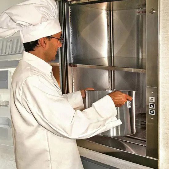 Thang máy chở thức ăn hay thang máy tải thực phẩm là một loại thang máy tải hàng có kích thước khá nhỏ chuyên dụng để chở thực phẩm trong các nhà hàng, khách sạn, bệnh viện, quán cafe… Thang tải thực phẩm mang đến giải pháp giúp tiết kiệm chi phí và nhân lực. Ngoài các ưu điểm như vận hành dễ dàng, sử dụng an toàn êm ái mà không gây ôn ào, thang tải thực phẩm còn giúp nâng cao hiệu suất hoạt động phục vụ của nhà hàng, khách sạn…