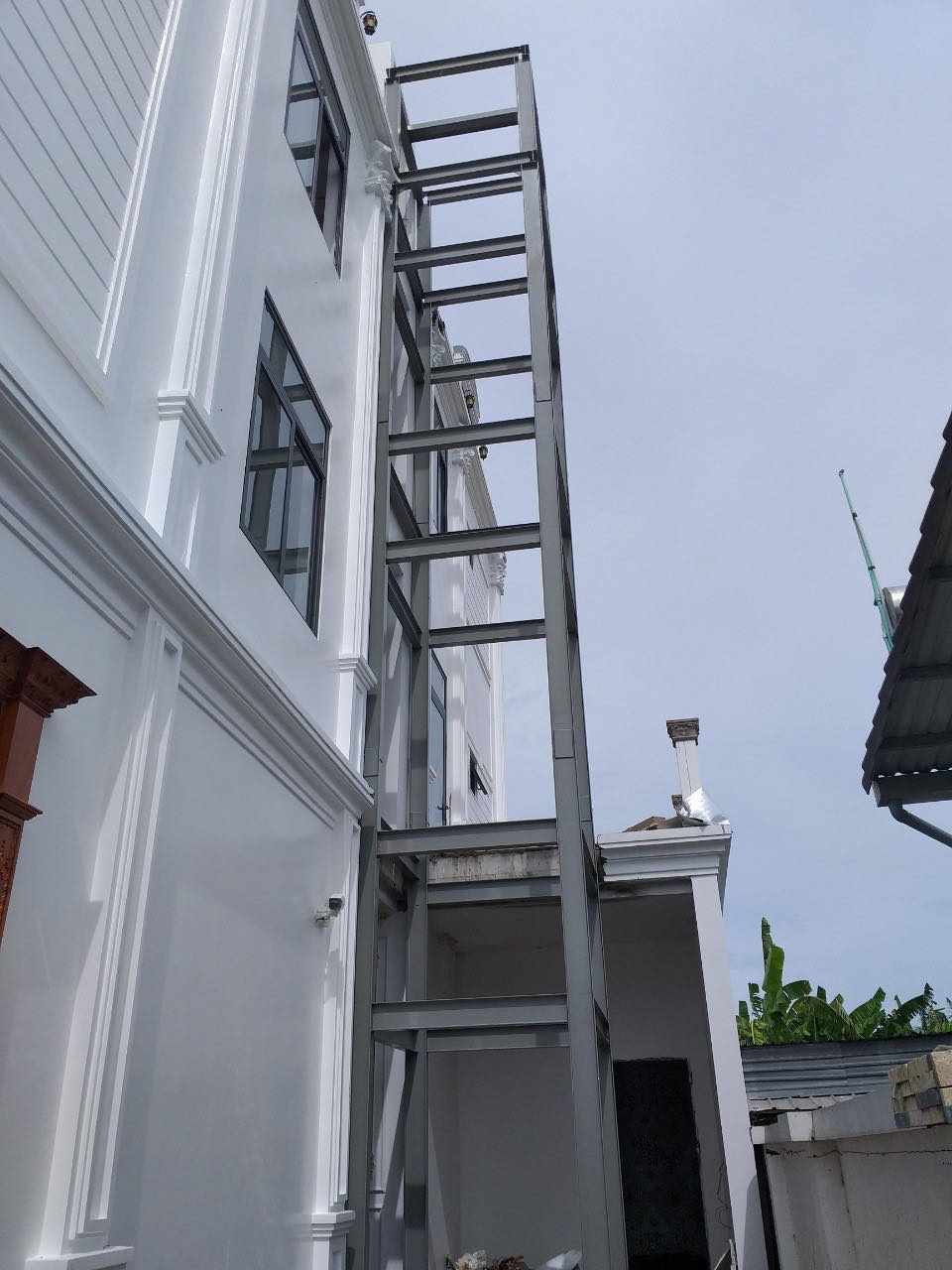 Ngoài trường hợp phía trên thì còn một trường hợp khác cũng sẽ cần phải ép cọc, gia cố móng hố thang máy đó là lắp thang máy ngoài trời (loại thang máy có một mặt là mặt cửa thang liền với tường nhà còn 3 mặt còn lại đứng độc lập), thường có hai dạng công trình sẽ sử dụng loại thang này là: