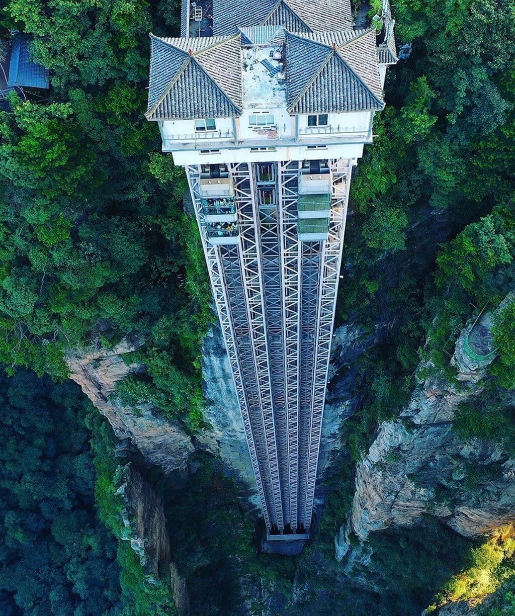 Hình ảnh phía trên chính là hệ thống thang máy Bách Long. Đây là công trình được tổ chức Guinness thế giới công nhận là công trình thang máy ngoài trời cao nhất thế giới (cao 335m)